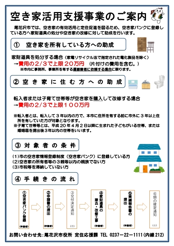 定住促進事業に関するお問い合わせ:尾花沢市役所 定住応援課 定住推進係